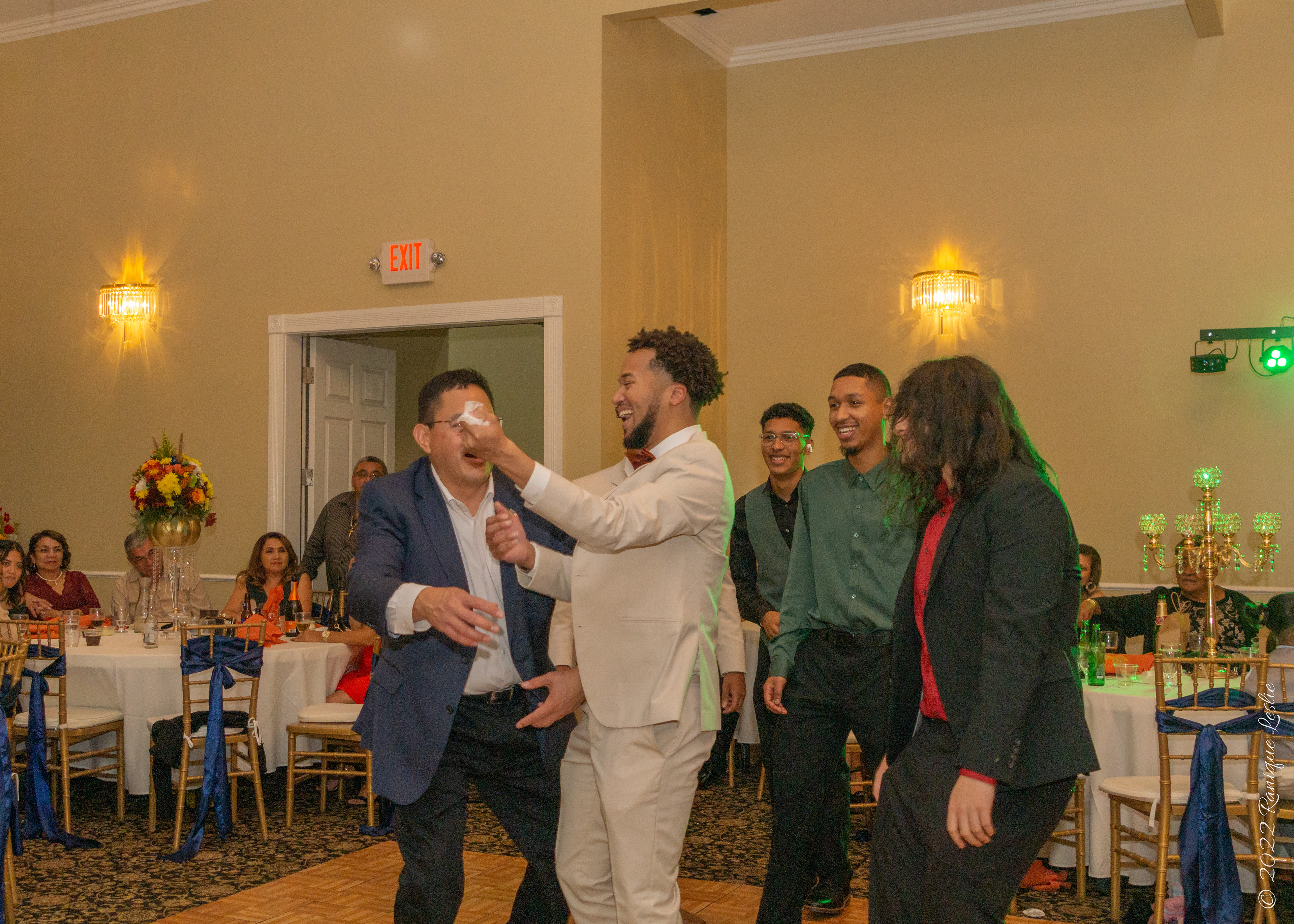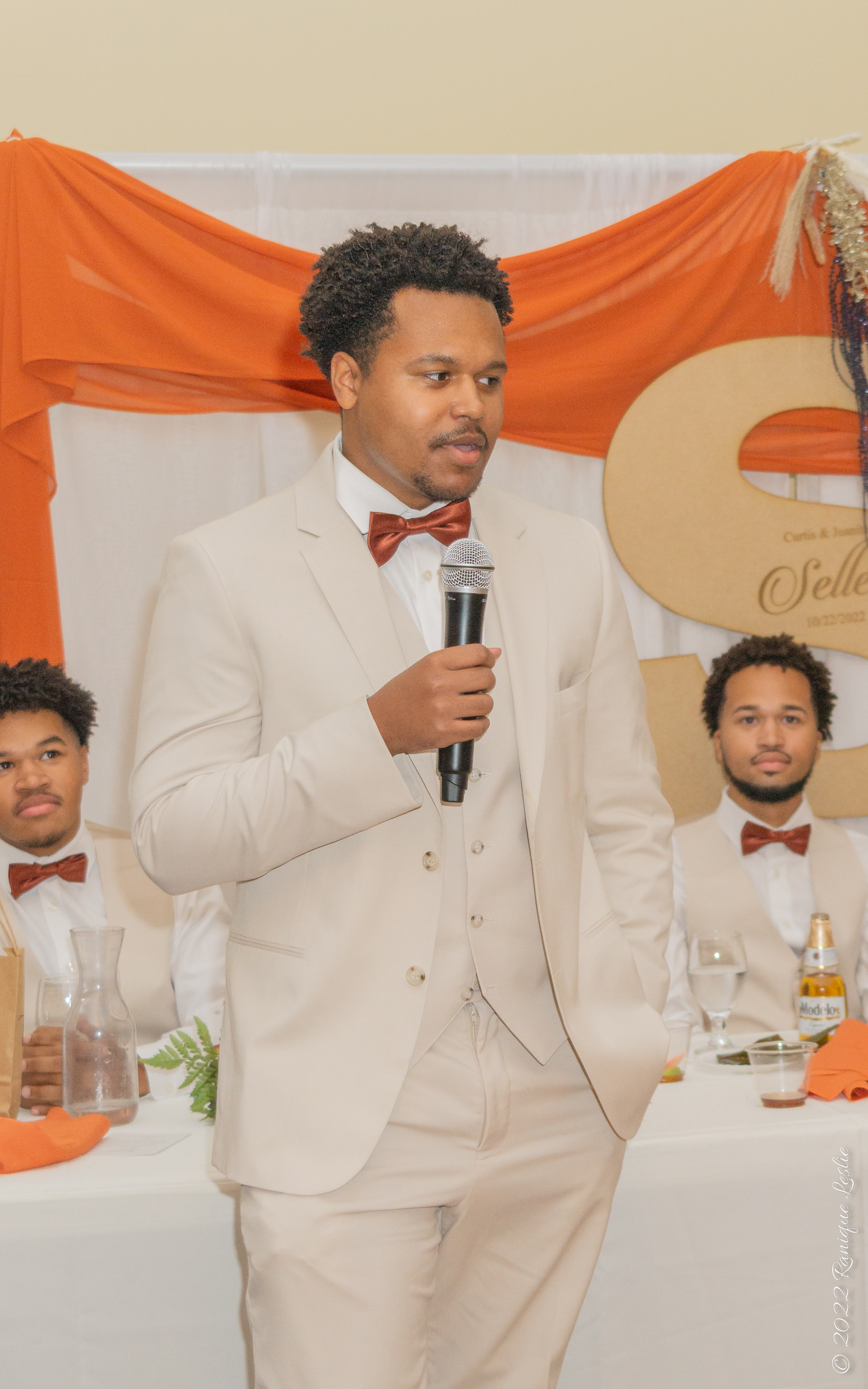 Groom taking a drink at Reception in Waukegan, IL